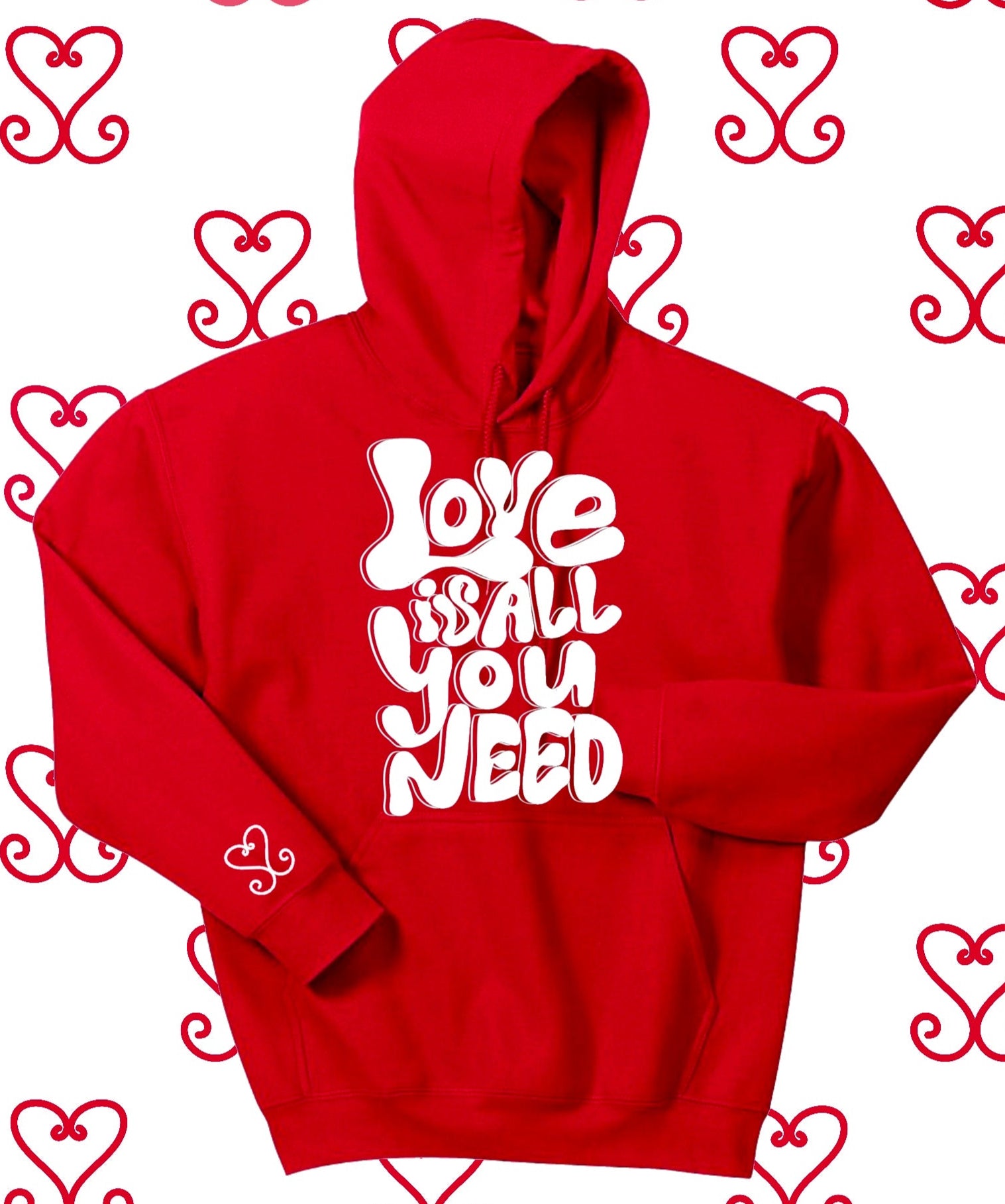 Stay warm and spread the message of love with my Love is All You Need Red Hoodie. Made with soft and thick fabric, features a bold red color and the powerful message "Love is all you need" in white. Perfect for chilly days and promoting a positive mindset.