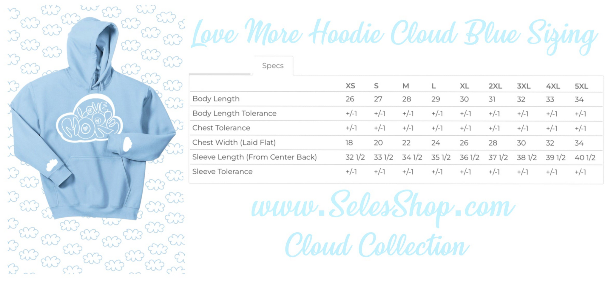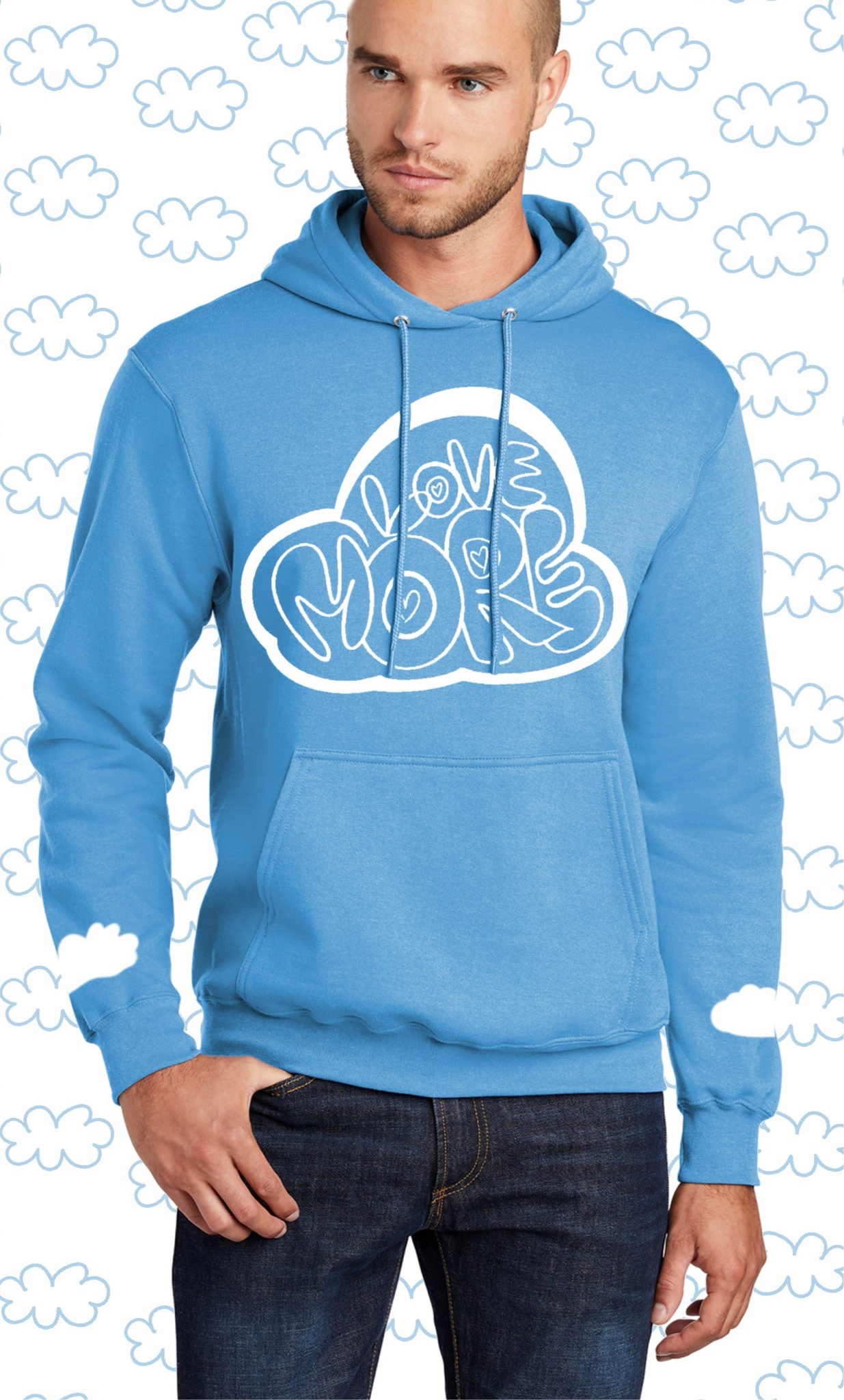 Stay cozy, look cute, and love more with my Love More Clouds Sky Blue Hoodie. Features my Love More Cloud design also available on a sticker.